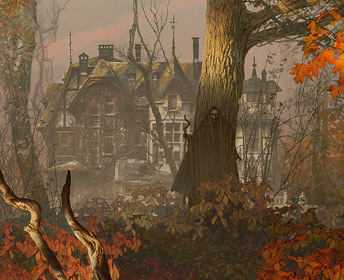 Mr. Carapace Clavicle Moundshroud and his imposing mansion.